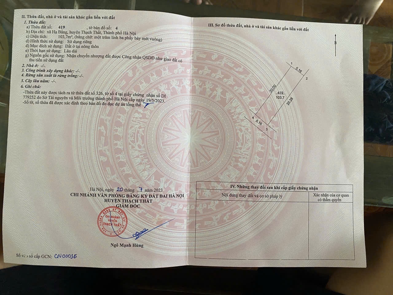 Lô 99,6m2 thôn 1 Hạ Bằng – Thạch Thất
